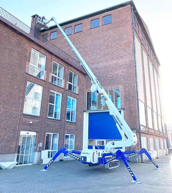 丹麥獵鷹的高空作業(yè)蜘蛛車Falcon 380XL Vario是一款具有市場領(lǐng)先功能的原設(shè)計蜘蛛車。獵鷹蜘蛛機(jī)的Falcon 380XL Vario的工作高度為38米,并配有高度可調(diào)的履帶式升降機(jī)。380XL Vario型是丹麥獵鷹最新高空作業(yè)蜘蛛車作品,其最大承載能力達(dá)到450公斤,作業(yè)高度38米;得益于先進(jìn)的電控系統(tǒng)和安全控制系統(tǒng),以保證最大水平延伸達(dá)到16.5米。整個臂架采用伸縮臂+小臂的結(jié)構(gòu),符合大部分現(xiàn)場使用要求;由于很多客戶需要不僅僅在將蜘蛛車作為高空作業(yè)平臺,更是輔助高空作業(yè)安裝維修工具,因此380XL可以選擇玻璃安裝輔助托盤,來增加蜘蛛車的功能。