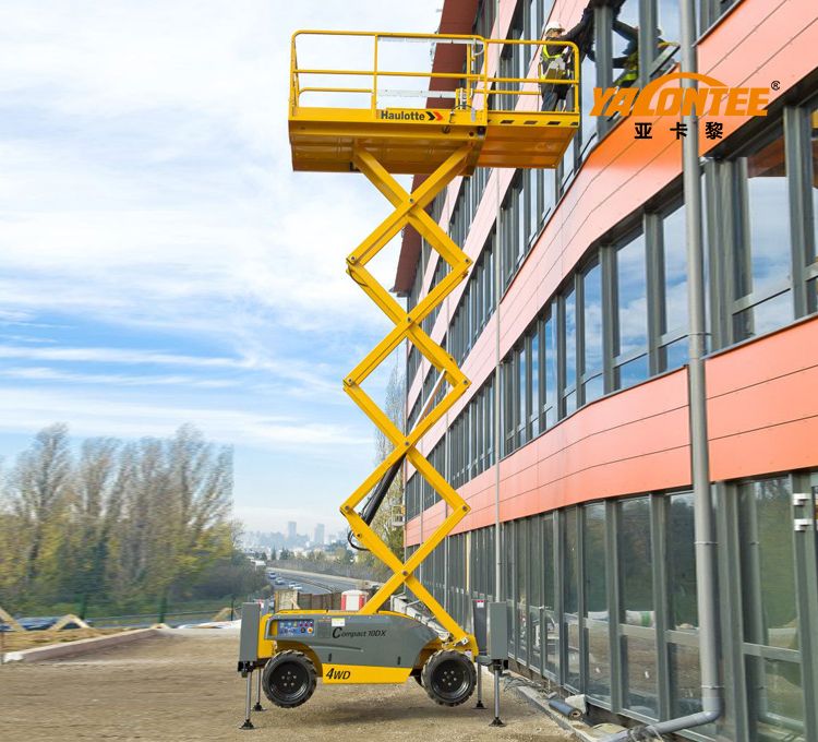 法國(guó)Haulotte公司生產(chǎn)的Compact10DX型越野剪刀式登高平臺(tái)作業(yè)高度為10米,承載能力為565公斤,采用大功率柴油發(fā)動(dòng)機(jī),配置越野實(shí)心輪胎,全比例控制技術(shù),而且整個(gè)機(jī)器美觀大方,非常適合在類似建筑工地上的使用環(huán)境。